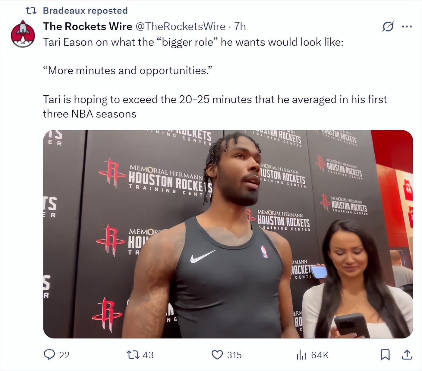 伊森在訓練後也接受了採訪,他表示希望在這個賽季獲得更大的角色與更多的登場時間:我之前三個賽季場均就20-25分鐘左右,新賽季我希望自己可以承擔更大的角色,場均登場時間可以超過此前三個賽季的平均時間 。