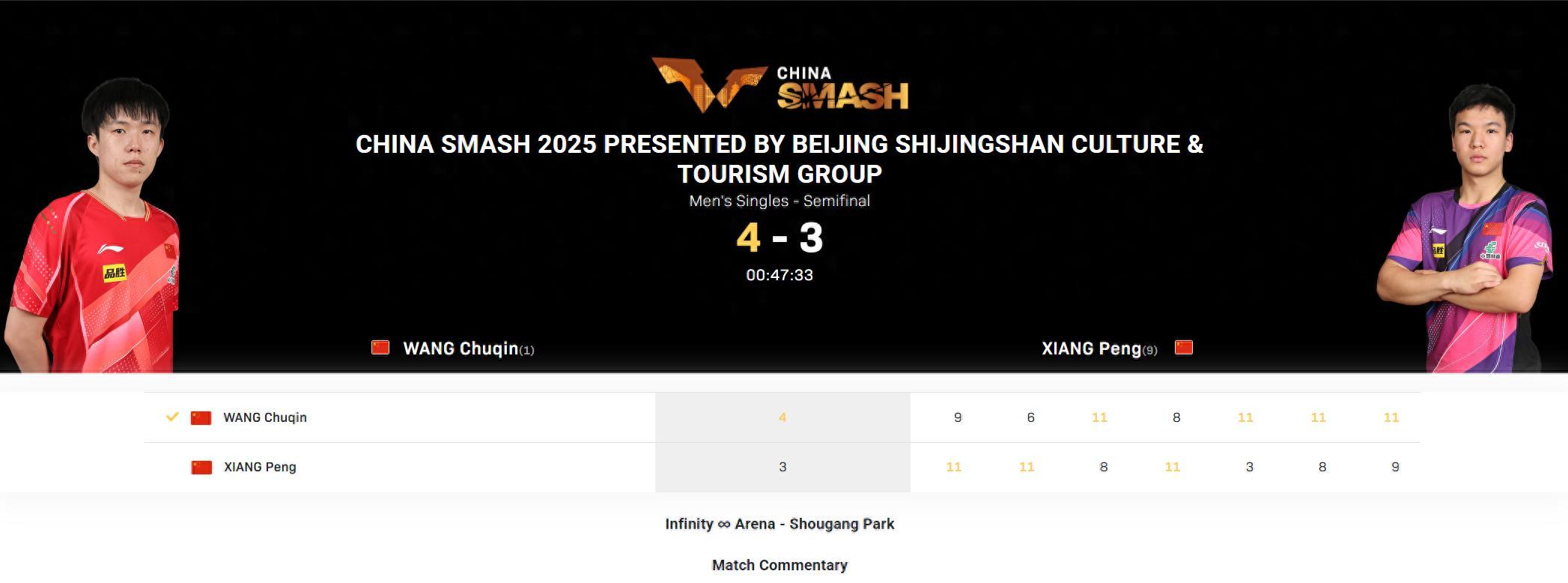 本次北京大滿貫打入男單半決賽已經是仁川后最佳成績,WTT太原常規賽的男單半決賽含金量肯定遠不如WTT大滿貫的男單半決賽,向鵬本站算是一掃陰霾了。