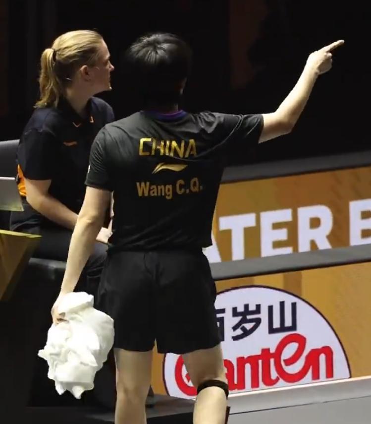 有球迷拍到王楚欽的汗水溼透了他的體恤,他靠着沙發竟然將自己的名字都印上去了,王楚欽的疲勞是肉眼可見的,可他還是做到了。