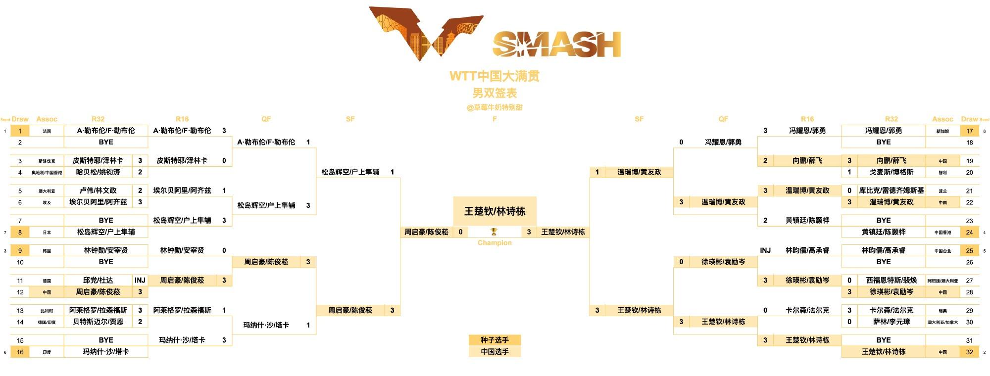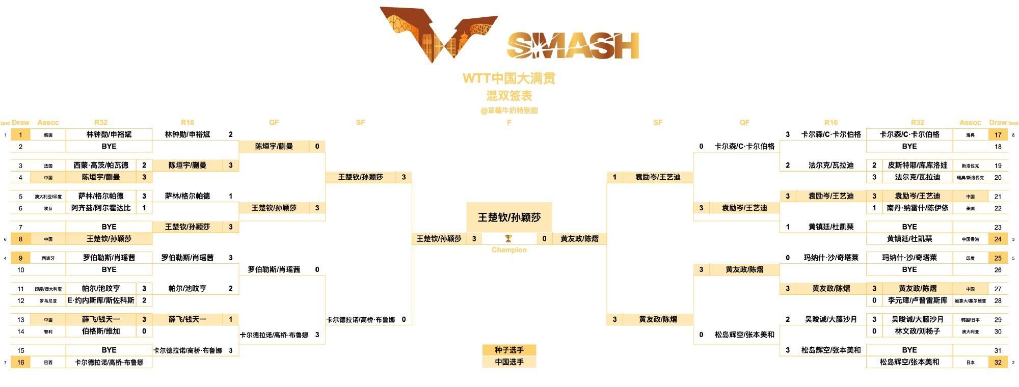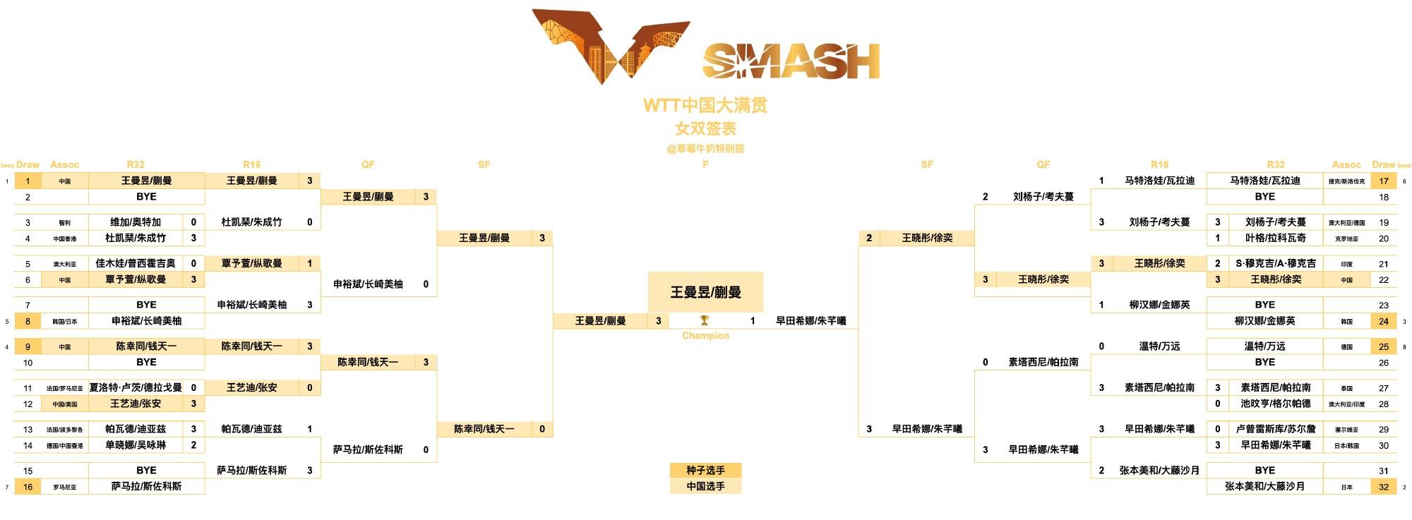 女雙:張本美和/大藤沙月、早田希娜/朱芊曦(跨協會)。