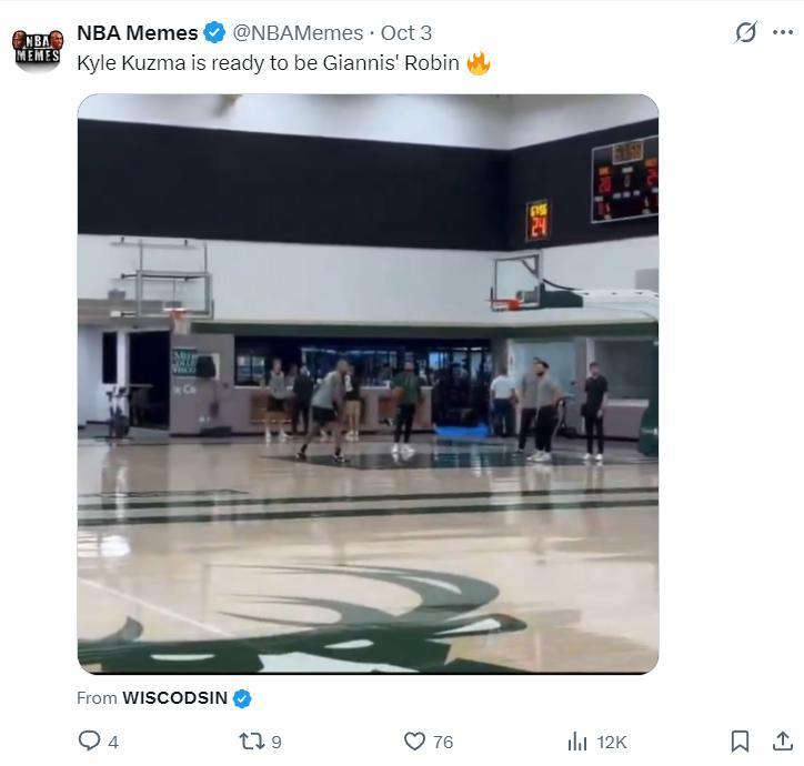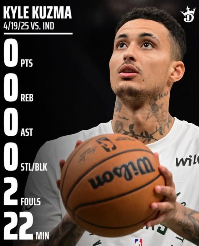 這場比賽最扎眼的當屬0分哥凱爾-庫茲馬,他在今年4月19日對陣步行者的比賽中22分鐘裏怒砍0分0籃板0助攻0搶斷0蓋帽,這張圖在本場比賽的賽後又被雄鹿球迷所瘋轉。