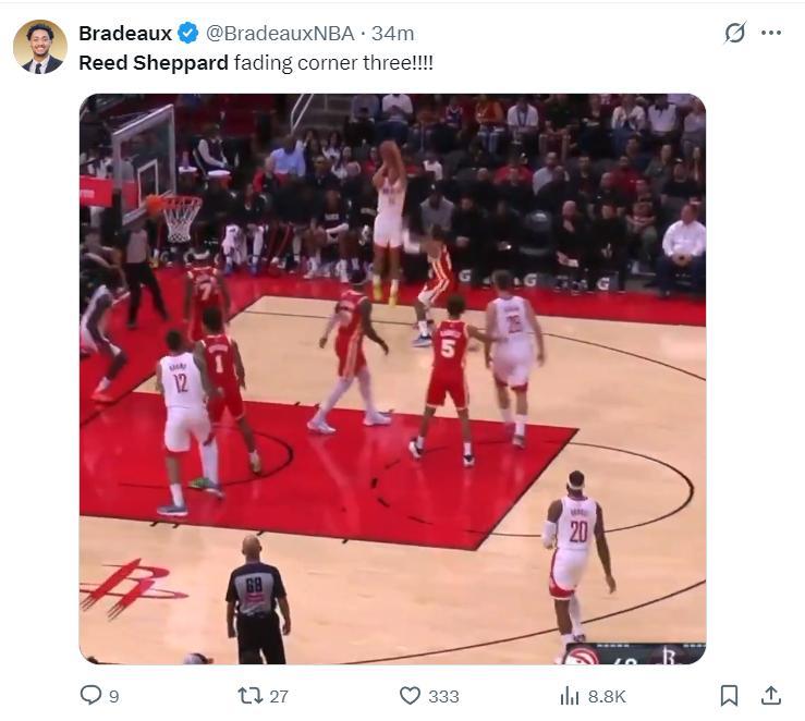 北京時間10月7日,NBA季前賽,火箭隊擊敗老鷹隊。謝潑德這場比賽的表現肯定是超出很多人預期的,他在有申京、伊森、小賈、阿門的先發陣容中還是拿到了不錯 的數據,而且謝潑德僅僅出戰14分鐘而已,拿到7分3籃板1助攻,命中了一個漂移三分球。