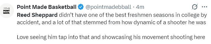 美媒:謝潑德在NCCA時期打出了高光表現絕非偶然,他是一位極具進攻性的投手,真期待看到他能延續這種表現,繼續展示他的漂移三分。