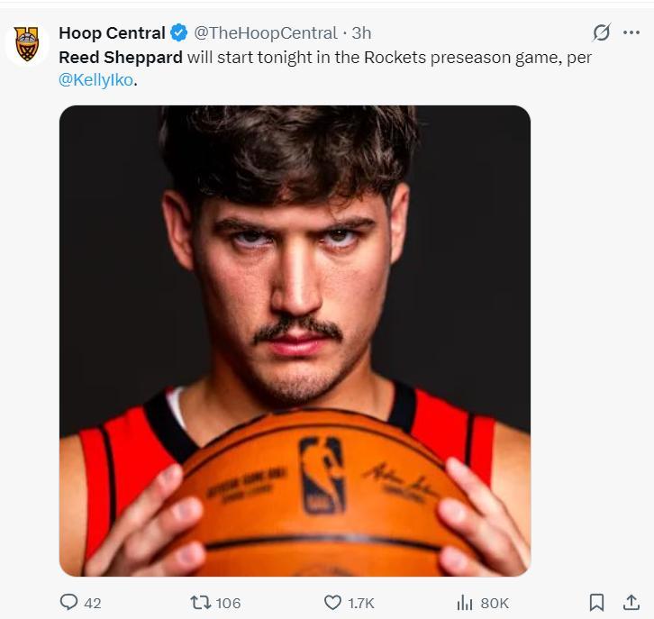 在賽前幾小時,火箭隊記凱利-伊科透露裏德-謝潑德將在季前賽第一場中先發,他在今夏的兩場夏季聯賽中,場均貢獻23分5.5籃板2.5助攻4搶斷,命中率爲36.4%、三分命中率31.8%。