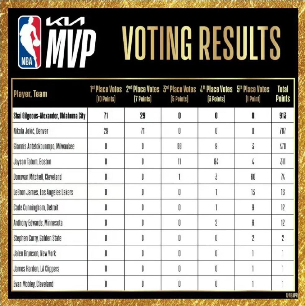 1.約基奇、2.揚尼斯、3.亞歷山大、4.東契奇、5.愛德華茲、6.文班亞馬、7.坎寧安、8.班凱羅、9.濃眉、10.米切爾;