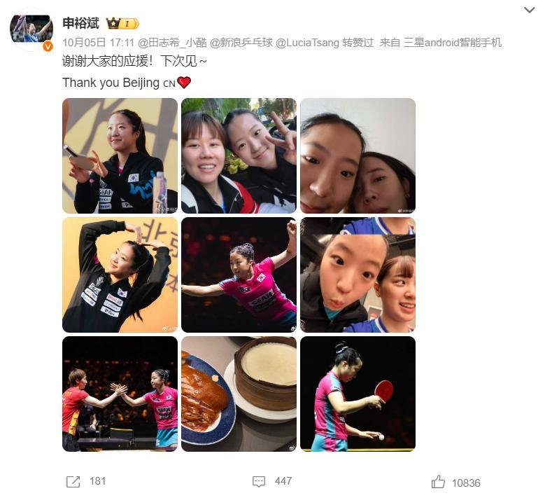 申裕斌絕對是韓乒裏面最忙碌的,她在WTT北京大滿貫打進四強,10月4日打完最後一場比賽,10月5日剛剛返回韓國,10月7日又從韓國飛往印度,申裕斌的休息時間也非常之少。