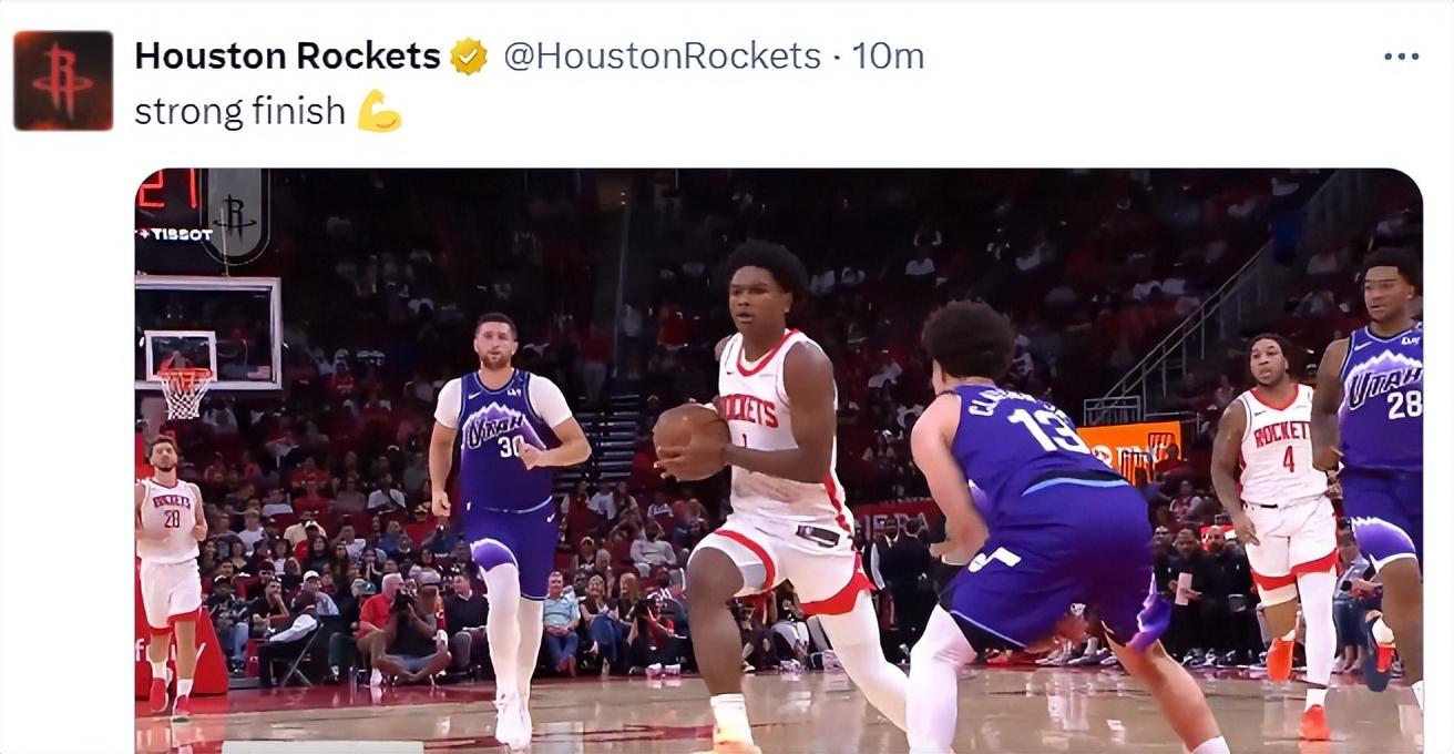 北京時間10月9日,NBA季前賽,火箭VS爵士。這場比賽阿門雖然還是球隊的先發一號位,但他在場上的角色定位更像是一個二號位,球隊的組織任務大部分集中在申京手中,這就讓阿門成爲終結點的效率極高,阿門三節19+7+6+2+1的數據也相當全面。