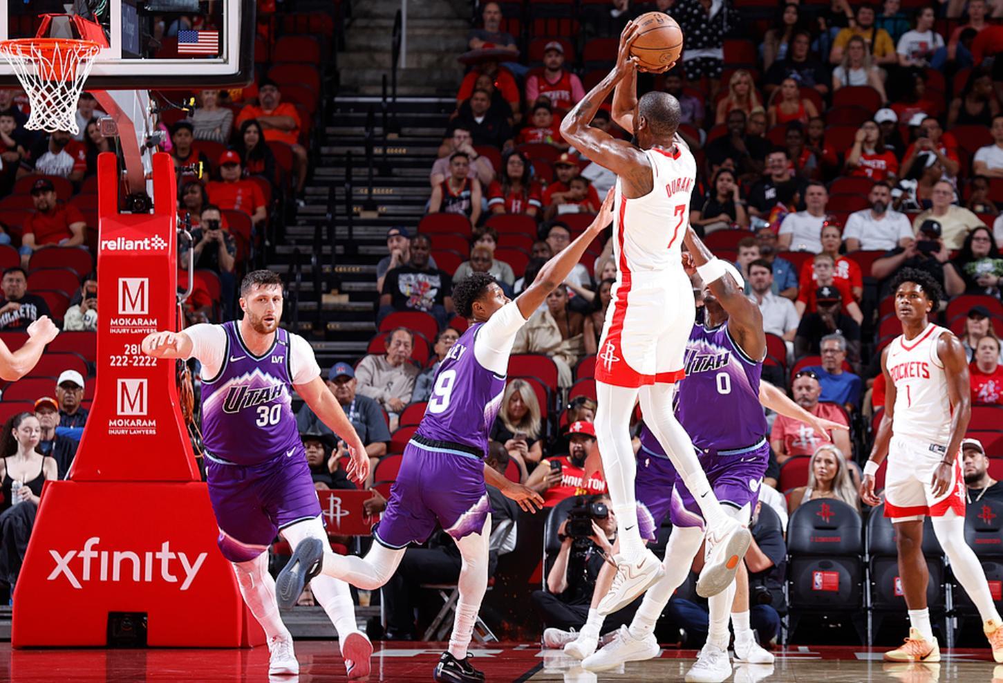 北京時間10月9日,NBA季前賽,火箭VS爵士。這場比賽杜蘭特只打了三節就拿到20分,第三節單節4中4拿到12分太爆炸,KD這位37歲的得分手仍然是聯盟前十的超巨,相信火箭跟他談提前續約會成功的,畢竟他是火箭最需要的關鍵時刻得分手。