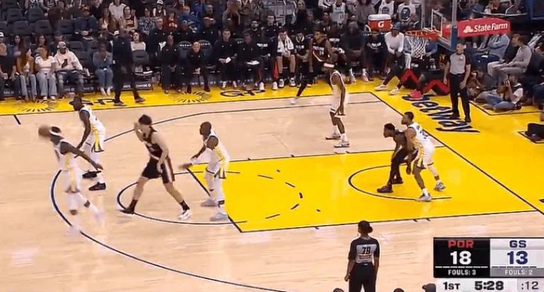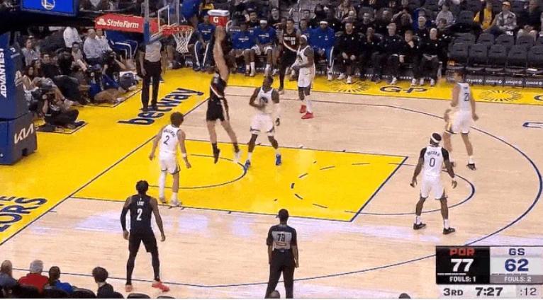 小楊首節的表現很差,勇士隊專門打他這一點,因爲楊瀚森移動速度太慢,勇士就打到罰球線附近中投與拋投連續命中,小楊在進攻端也沒有任何的表現,失誤倒是很扎眼。