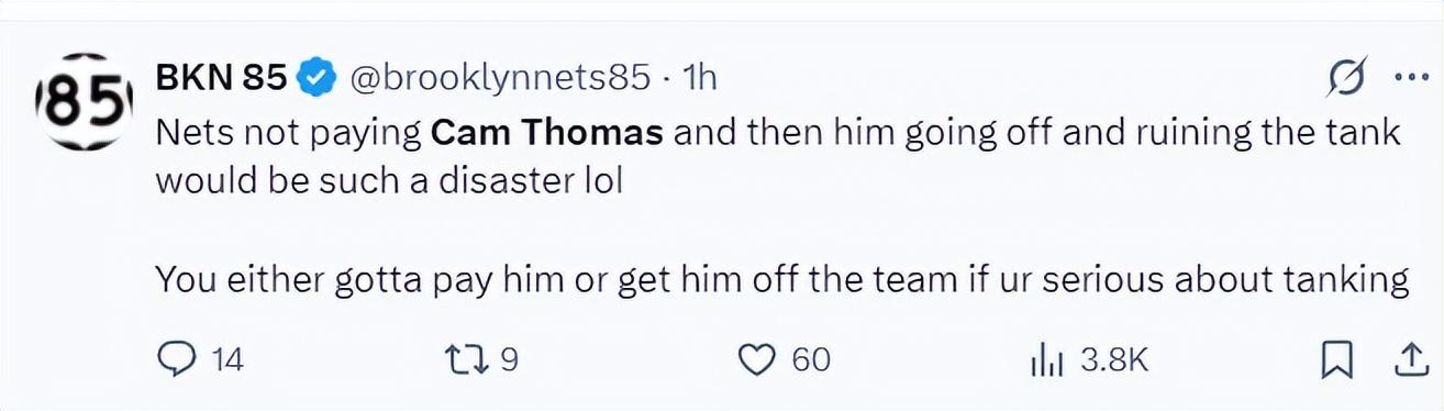 網媒希望籃網可以給托馬斯應有的合同,因爲他的表現不該只拿低廉的合同,除非籃網其他的打算。