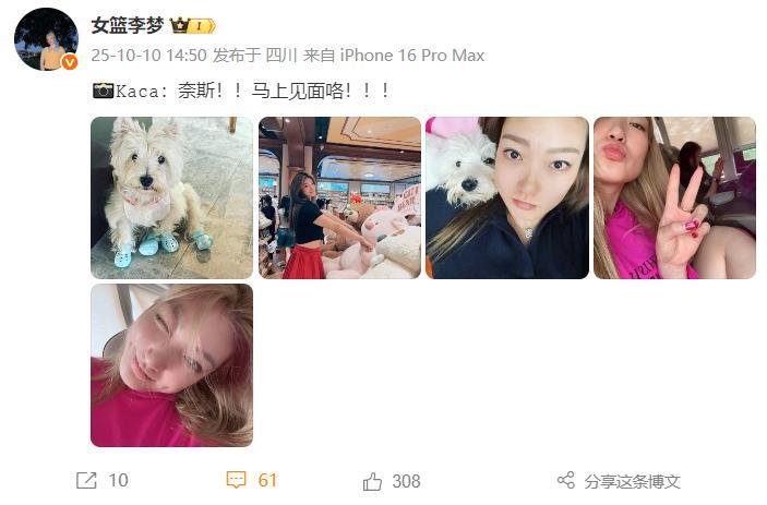 李夢也在個人的社媒上曬照寫道:奈斯,馬上見面咯!(很多球迷都跟她互動,知道她終於要回歸賽場了)