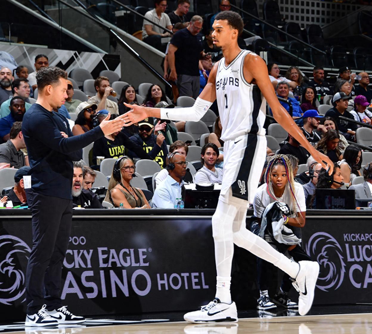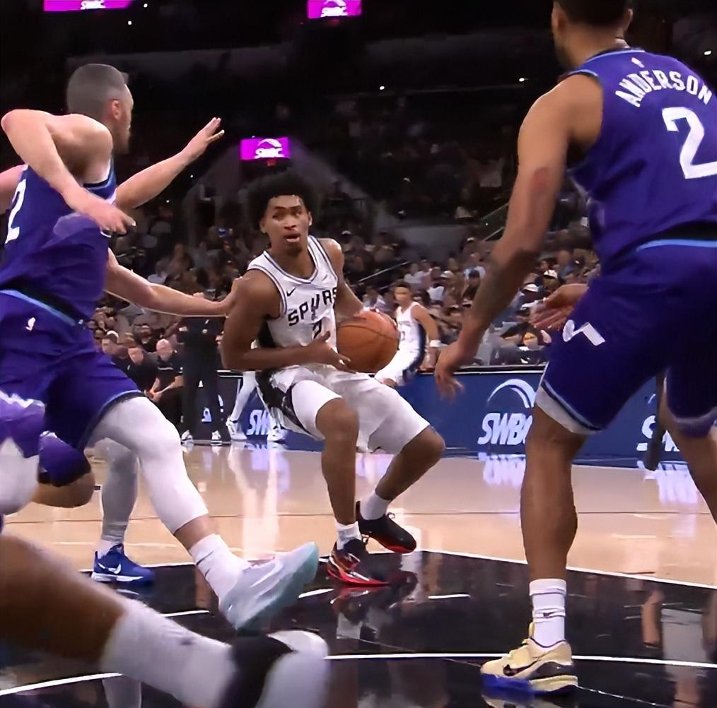 北京時間10月11日,聖安東尼奧馬刺隊迎來了第三場季前賽,此前兩場分別是對陣廣州男籃、熱火隊,此役對陣猶他爵士隊,馬刺隊的新科榜眼迪倫-哈珀復出了,他將直面5號秀艾斯-貝利,這兩大超星的對決還是被文班亞馬的風采掩蓋了,文班16分鐘就拿到22+7+3的數據。