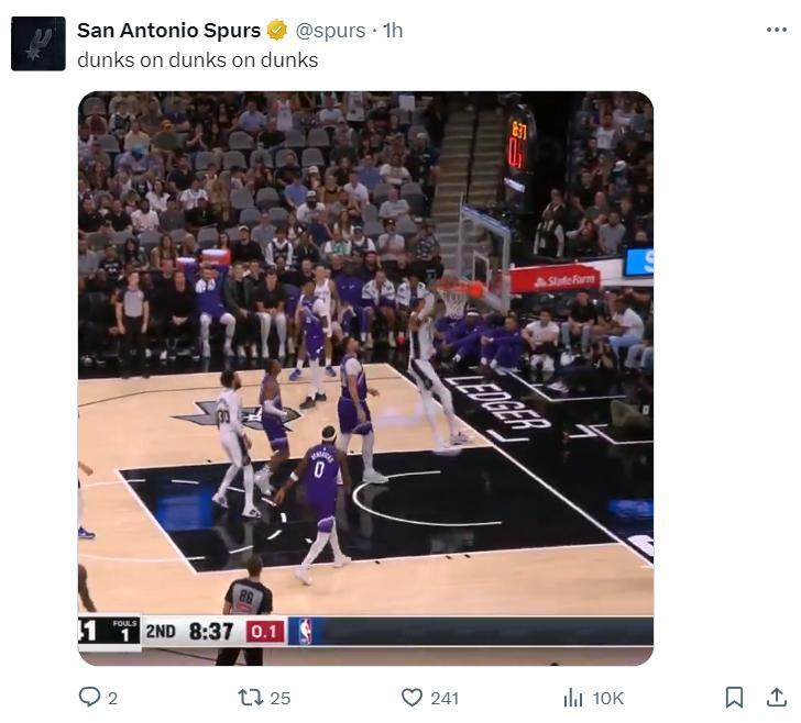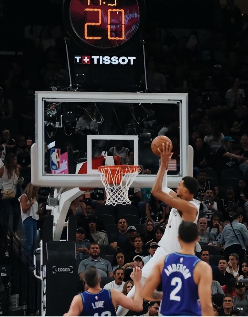 文班亞馬還與哈珀配合出了一個勢大力沉的空接雙手重扣,這一球讓馬刺主場的球迷們都沸騰了,哈珀這位身高1.96米的高大控衛真的太出彩了。