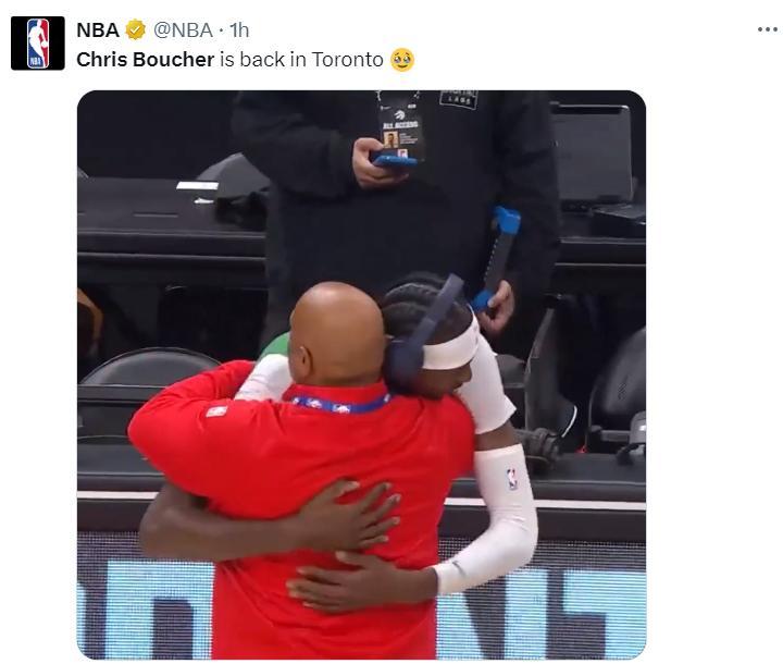 回到猛龍主帥的布歇也是跟猛龍的多位助理教練、前隊友進行了擁抱致意,布歇也很感謝猛龍的培養。