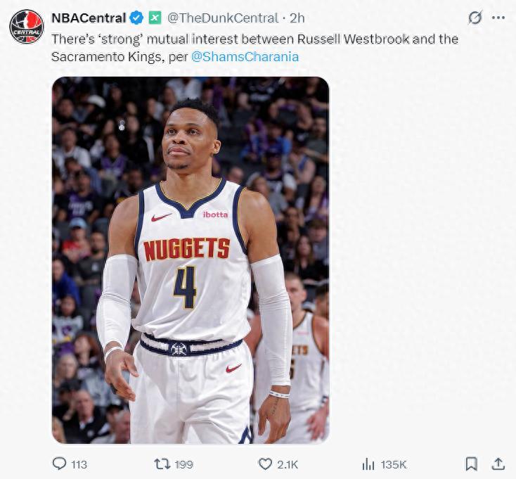 一天之前,國王記者Carmichael Dave曾透露,威少收到一份來自中國球隊的報價,這份報價大約是國王能給出的四倍之多,而且這份合約只有半個賽季。(但從今天的消息來看,威少還想希望在NBA打球)