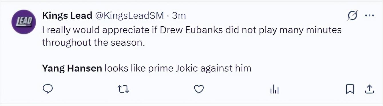 國王媒體:如果新賽季球隊減少尤班克斯的登場時間我會非常感謝,因爲他在場已經讓楊瀚森打出了約基奇的表現。