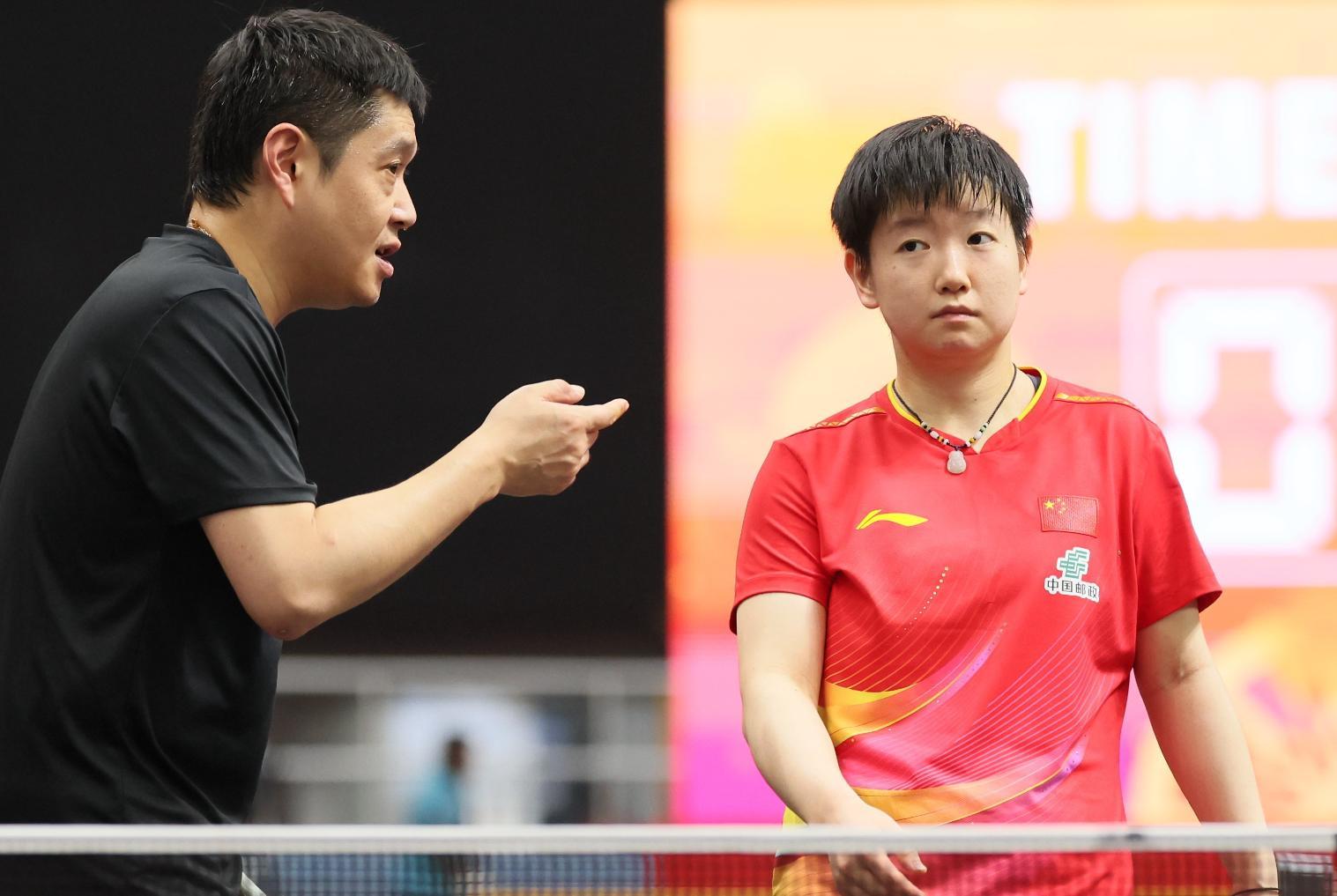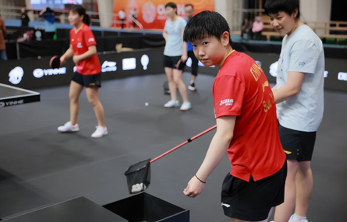 邱貽可指導不斷給莎莎喂球讓她精進正手,王藝迪、王曼昱配合攻防演練,相信國乒選手們很快可以克服極端天氣對比賽的影響。