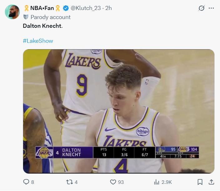 北京時間10月13日,湖人擊敗勇士的季前賽,道爾頓-克內克特是先發二號位,這場比賽克內克特一掃陰霾得分上雙,此前兩場比賽克內克特合計21中5+三分14中3,他甚至被多支球隊視爲負資產,不少GM認爲湖人送走他需要搭上一些優質資產纔行。