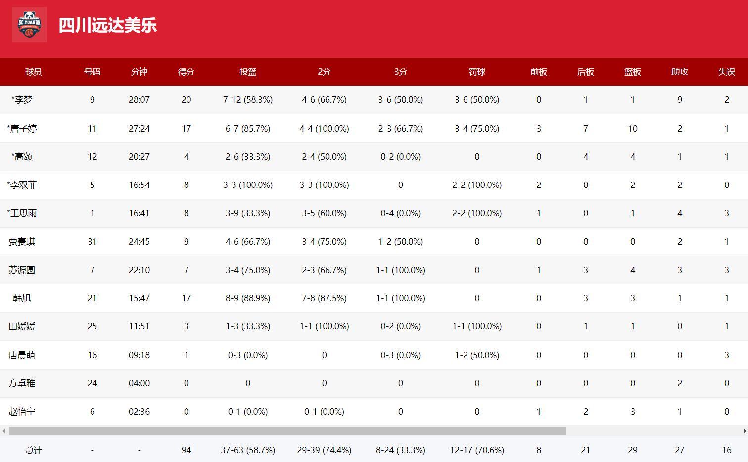 四川隊這場除了李夢之外,唐子婷7中6+三分3中2拿到17分,韓旭9中8拿到17分,王思雨9中3拿到8分4助攻,王思雨是四川助攻第二高的球員。