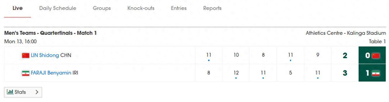 此役本雅明-法拉吉再次遇上了林詩棟,兩人的第一局交手都是處於一個試探,石頭的回球力道很大,15歲的法拉吉還沒有適應,林詩棟第一局11-8拿下。