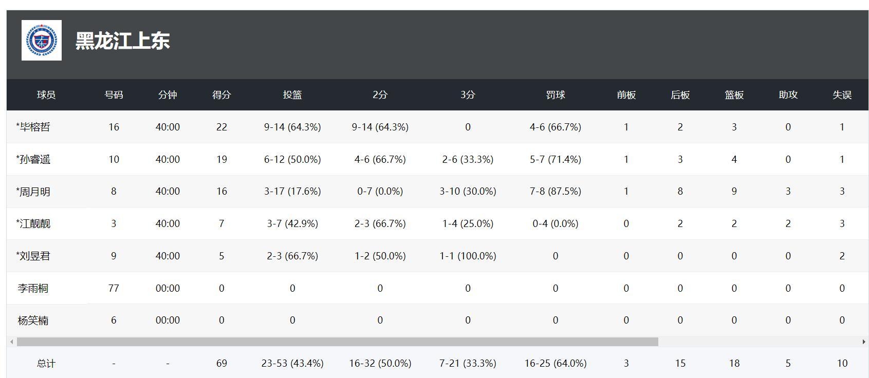 此役畢榕哲、周月明、孫睿遙都上雙,發揮最好的還是1.85米的小前鋒畢榕哲,她全場比賽40分鐘,14中9,拿到22分3籃板,她累的都沒辦法去拼搶籃板球了。10月9日-10月13日這4天時間裏她打了4場,而且4場比賽都打滿40分鐘,就算是男籃運動員都受不了,況且是女籃運動員。
