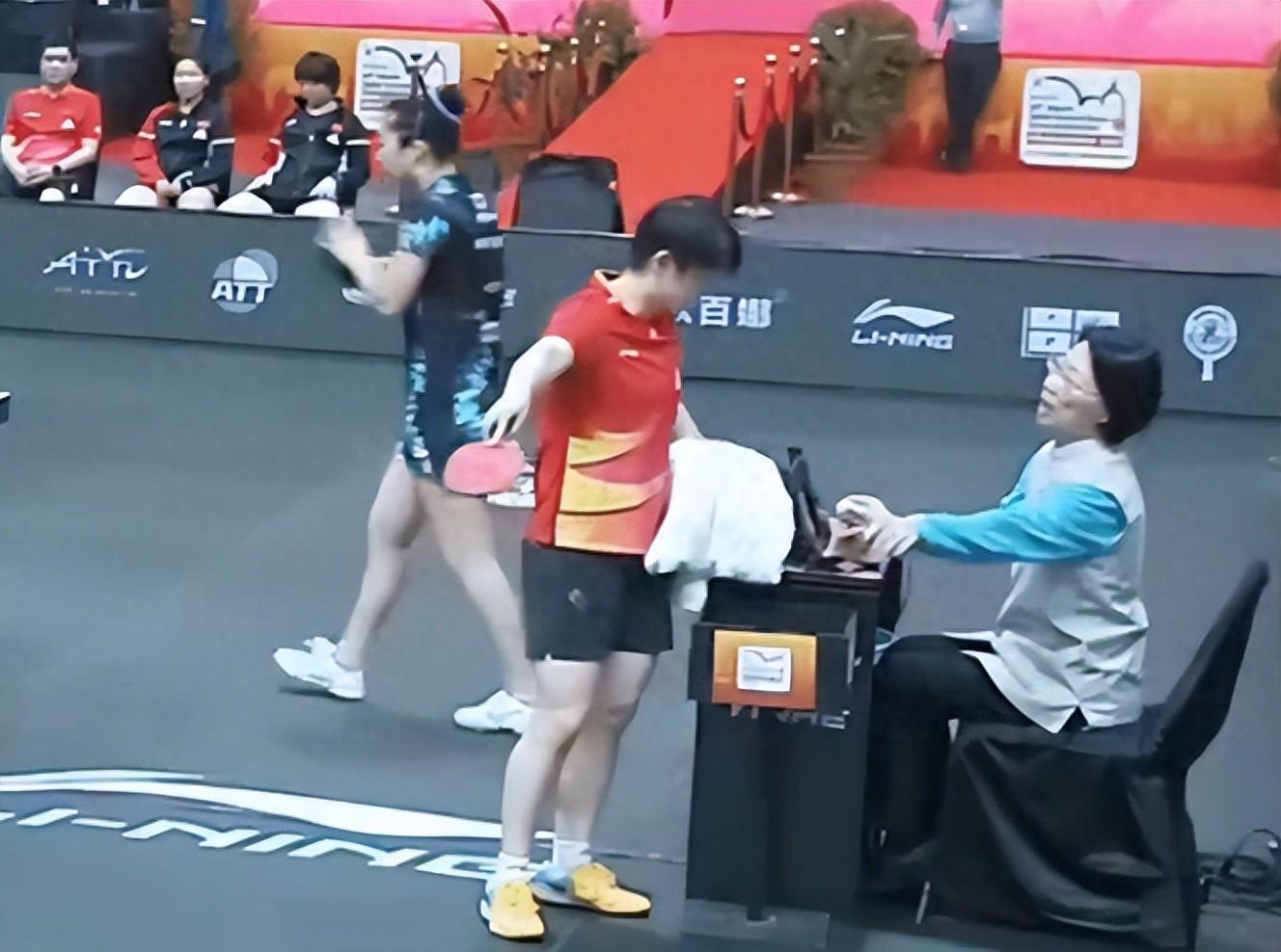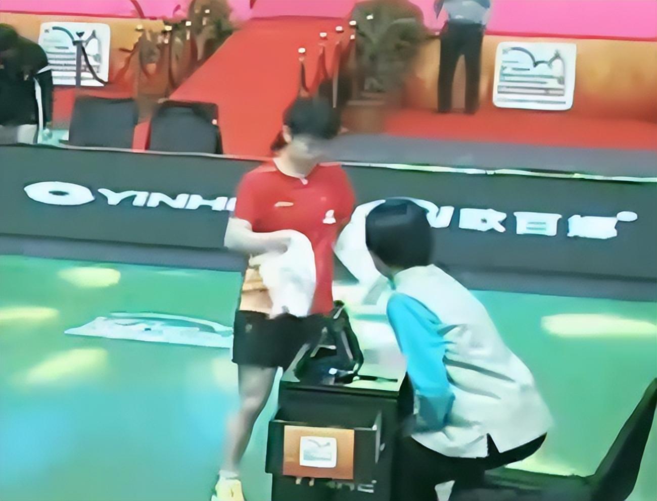在第二局的局間隙,孫穎莎剛剛擦完了汗水,她到放毛巾的地方並沒有直接放下毛巾,她找了一個東西墊着自己的毛巾,因爲孫穎莎生怕被細菌、病毒感染,印度場館名聲在外,如果在比賽中因爲個人沒有注意衛生被感染生病,那對球隊的奪冠大計必然有影響,所以孫穎莎很小心,昨天王楚欽的毛巾是用塑料口袋紮好放着的。