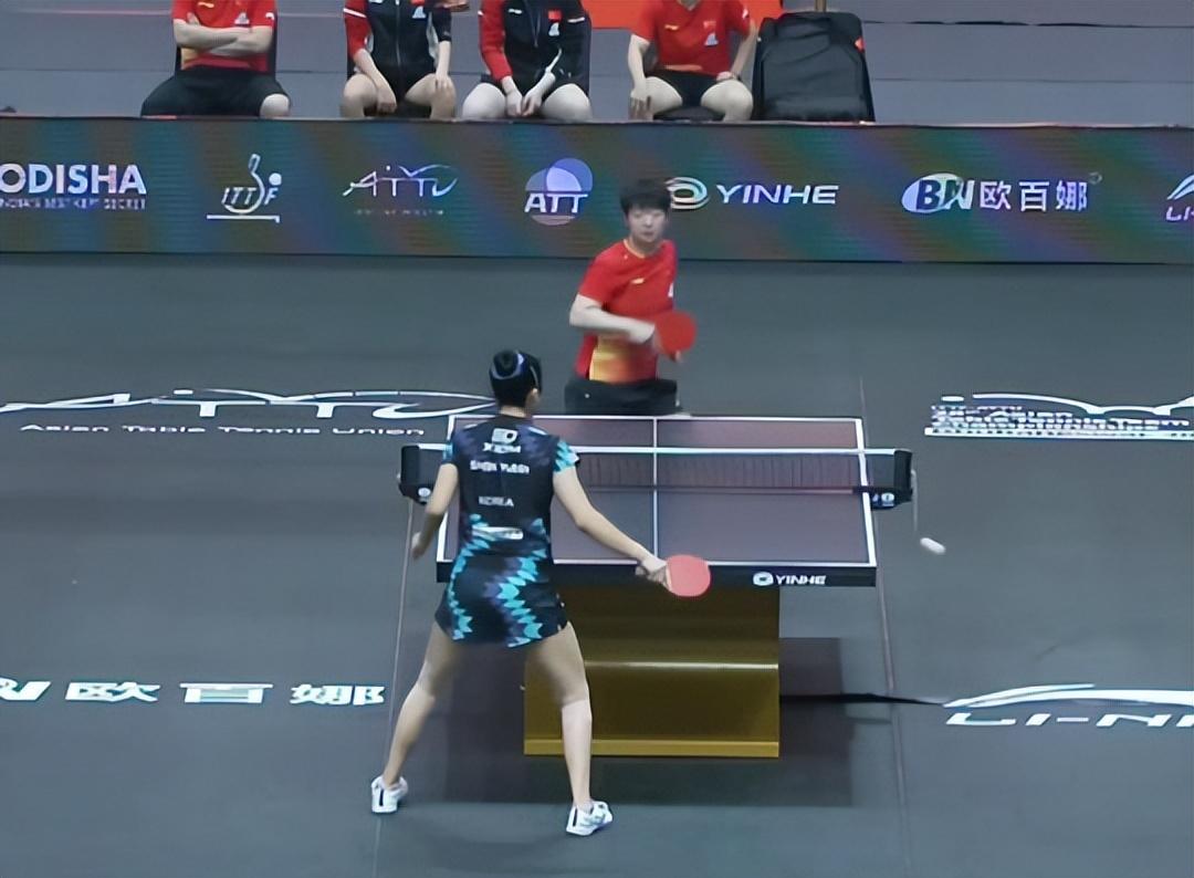 世界排名13的申裕斌在一單遇上世界排名第一的孫穎莎,結果是孫穎莎3-1輕鬆取勝,四局比分:11-4、11-8、4-11、11-4,比賽第二局有一球孫穎莎直接一板拉死,申裕斌根本連反應都反應不過來。
