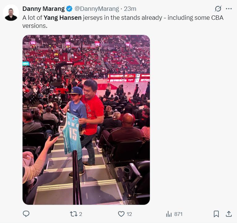 這場比賽有身穿楊瀚森CBA球衣的中國球迷來支持小楊,小楊已經成爲中國的全民偶像。