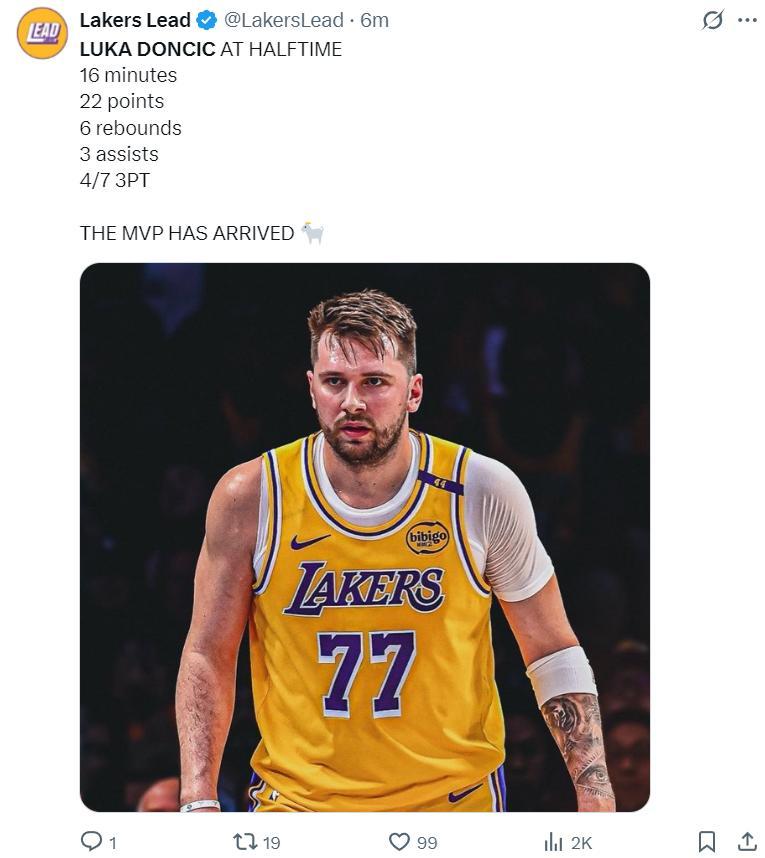 湖媒曬出東契奇半場數據寫道:MVP來了(山羊表情)。