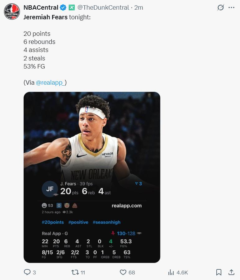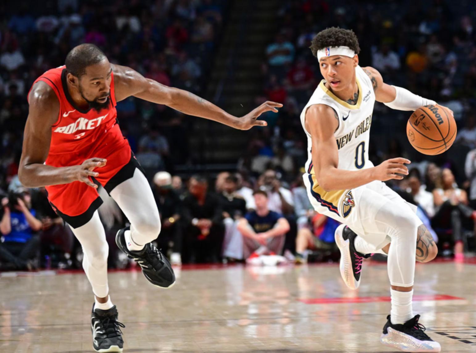 北京時間10月15日,鵜鶘128-130惜敗火箭。這場比賽實際上第三節打完鵜鶘是大比分落後火箭,但末節兩隊第三陣容的比拼鵜鶘這邊瘋狂追分(單節40-28),因爲鵜鶘這邊有費爾斯這位7號秀他的天賦太出色了,末節單節拿到14分。