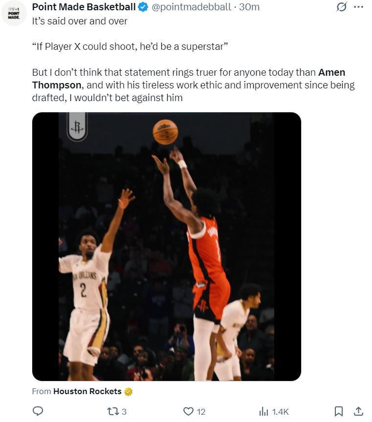 美媒PMB:我一直都在說,如果阿門可以練出投籃那麼他會成爲聯盟的超級巨星,他不懈的努力令人動容,自他加盟火箭隊以來就在不斷地進步,我覺得阿門會成功的。