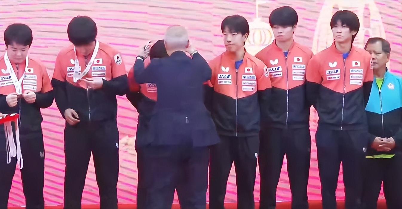 張本智和是這支日本男團的領袖,他在頒獎典禮上是一臉的不甘心,剛剛上臺時張本智和全程黑臉,只有在收到主辦方的玩偶禮品時他的嘴角纔有一絲的上揚,或許對於他來說拿到這個玩偶比拿到這塊銅牌更值得喜悅吧。
