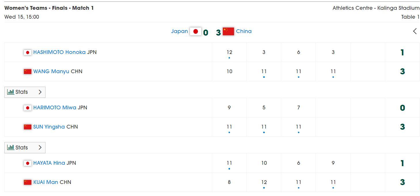 決賽對陣日本隊的陣容是王曼昱、孫穎莎、蒯曼,最終是王曼昱3-1橋本帆乃香、孫穎莎3-0張本美和、蒯曼3-1早田希娜。可以看到陳幸同的名字沒有出現在任何一場比賽中。
