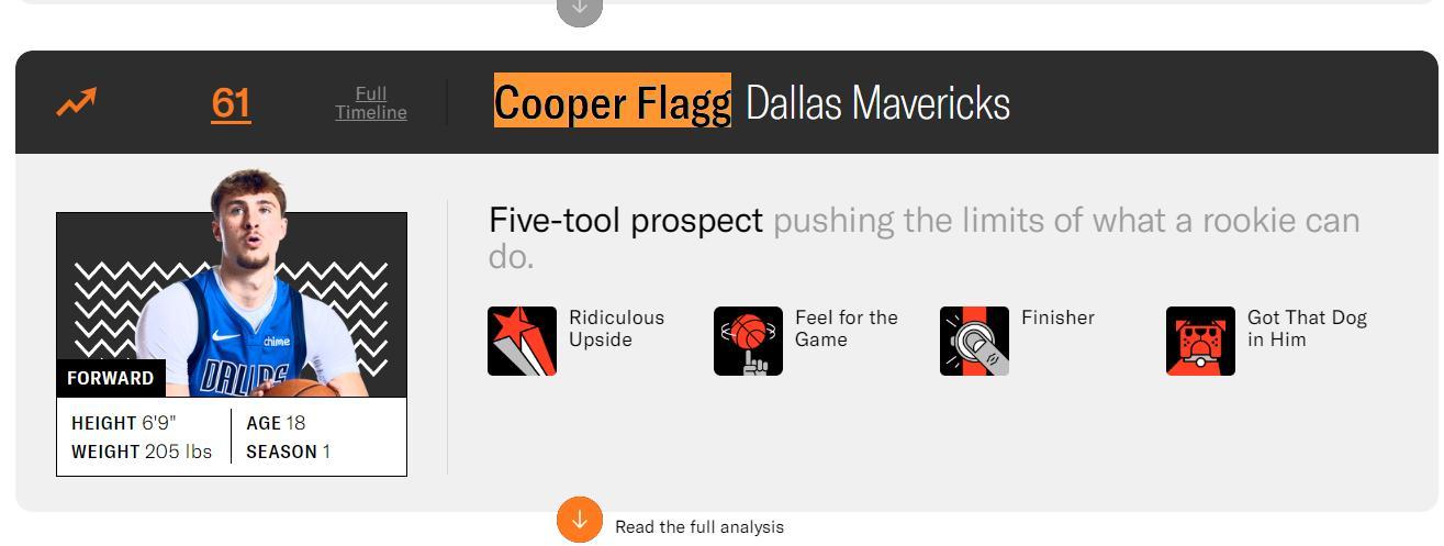 這場比賽之前,美國媒體The Ringer評選了25-26賽季聯盟百大球星,沒想到新科狀元弗拉格直接排在了第61的位置上,就衝他的天賦他就已經碾壓了多位NBA現役球員了?這個排名很明顯虛高。