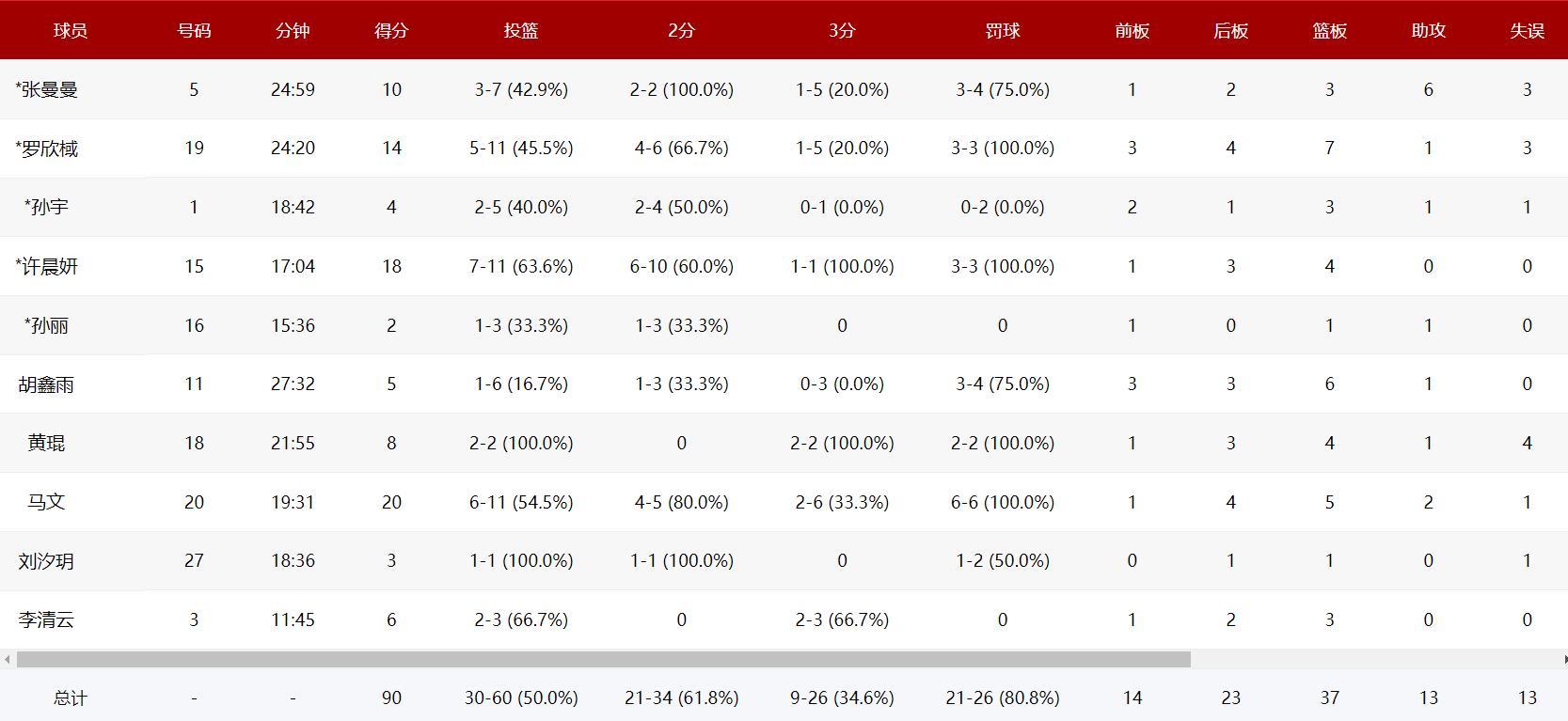 此役替補席的馬文登場20分鐘,11中6,三分6中2,罰球6中6拿到20分5籃板2助攻,命中率54.5%,她是得分最高的;