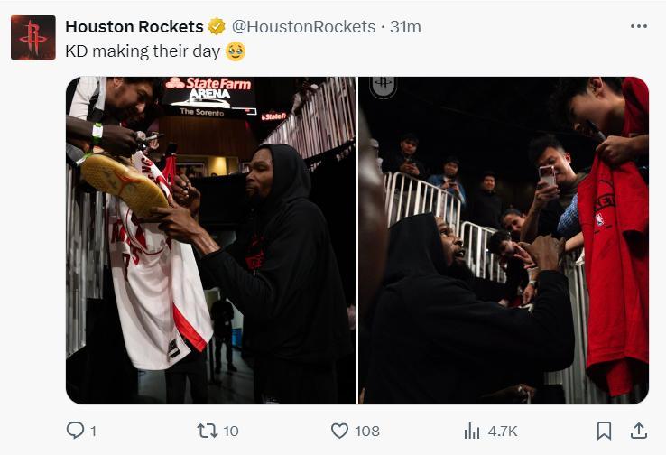 賽前杜蘭特爲亞特蘭大的球迷暖心簽名。