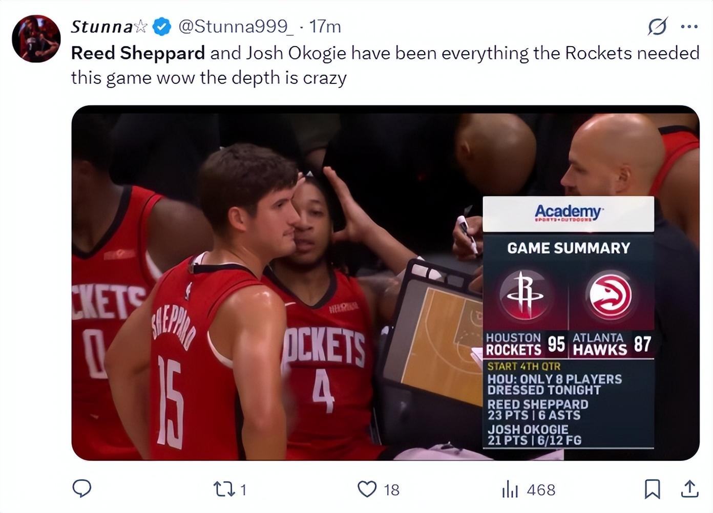 休媒:火箭的陣容深度實在是令人驚歎。