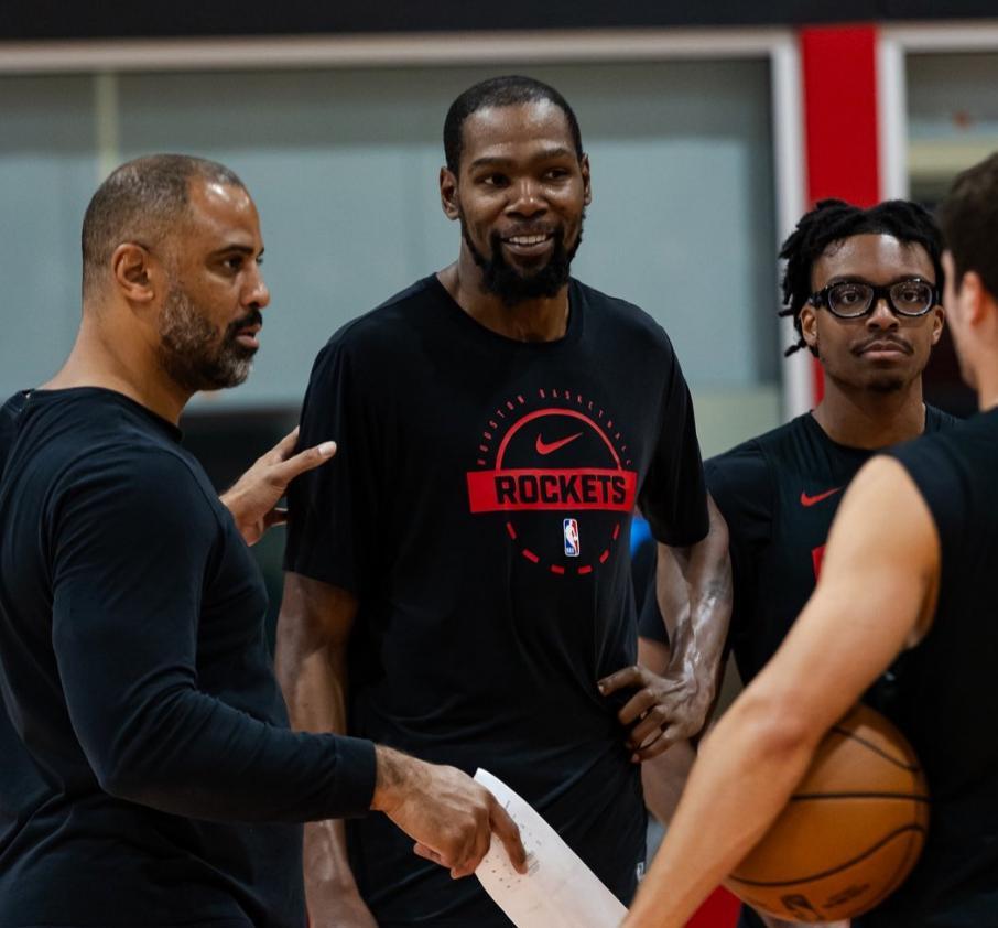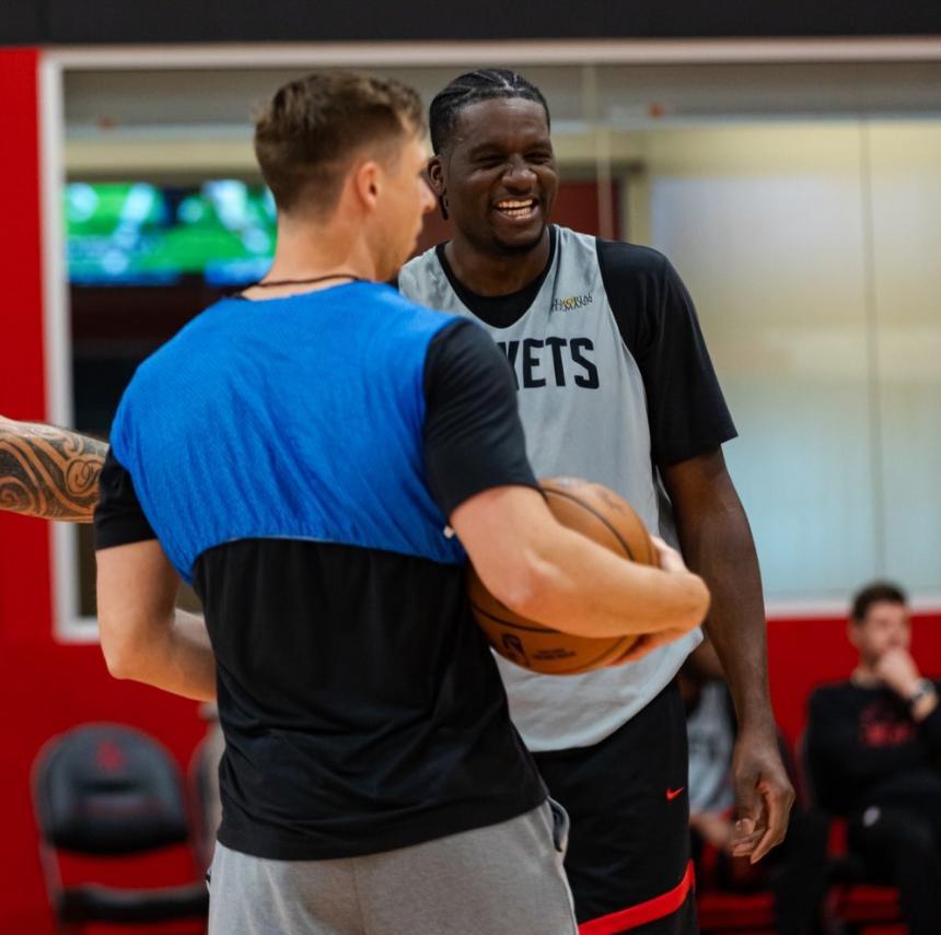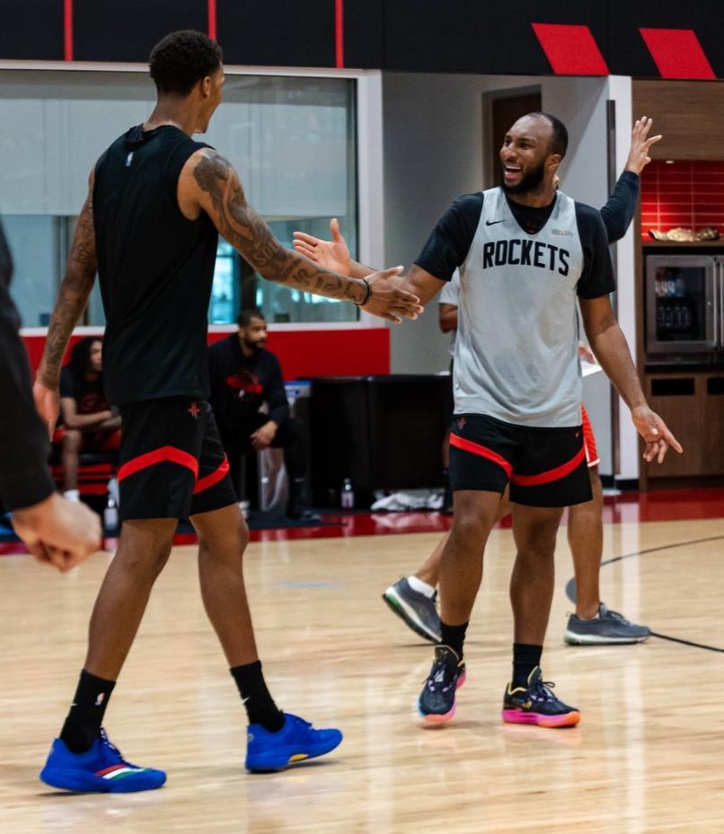 火箭隊在季前賽是四連勝,主力陣容、輪換陣容都非常強大,季前賽第四場利用第三陣容就碾碎了全主力出戰的老鷹隊,所以火箭所有人在北京時間10月19日的合訓中都露出笑容,火箭隊這個隊內的氣氛非常之好!