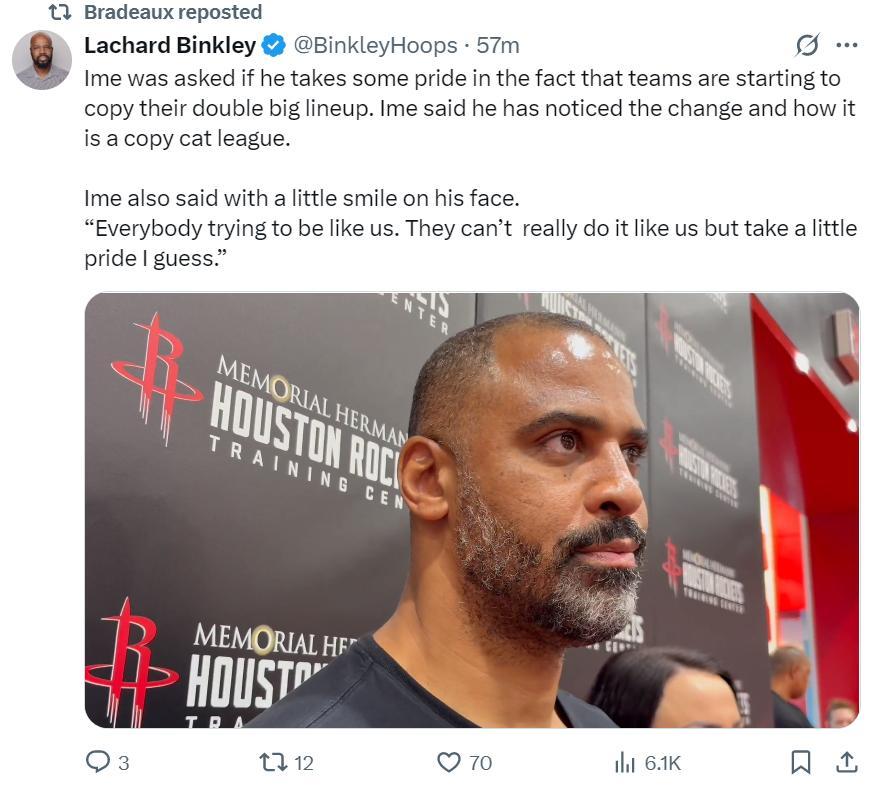 烏度卡:大家都想跟我們這樣打雙塔,但他們實際上做不到雙塔,我們能用雙塔是很自豪的,而且我們雙塔的表現也很不錯。