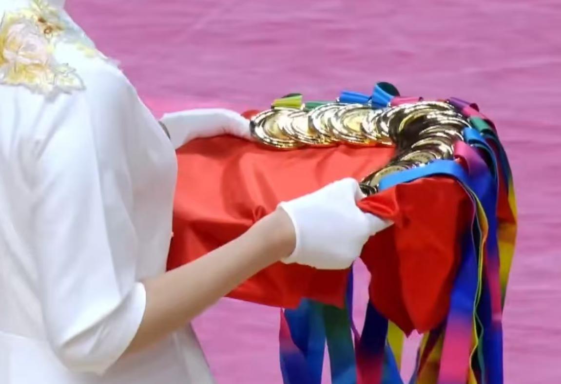 本次全錦賽冠軍的金牌特寫沒有很近,無法看清楚上面的圖案,只能看見是金色的獎牌,不知道李夢是哪個環節不滿意。