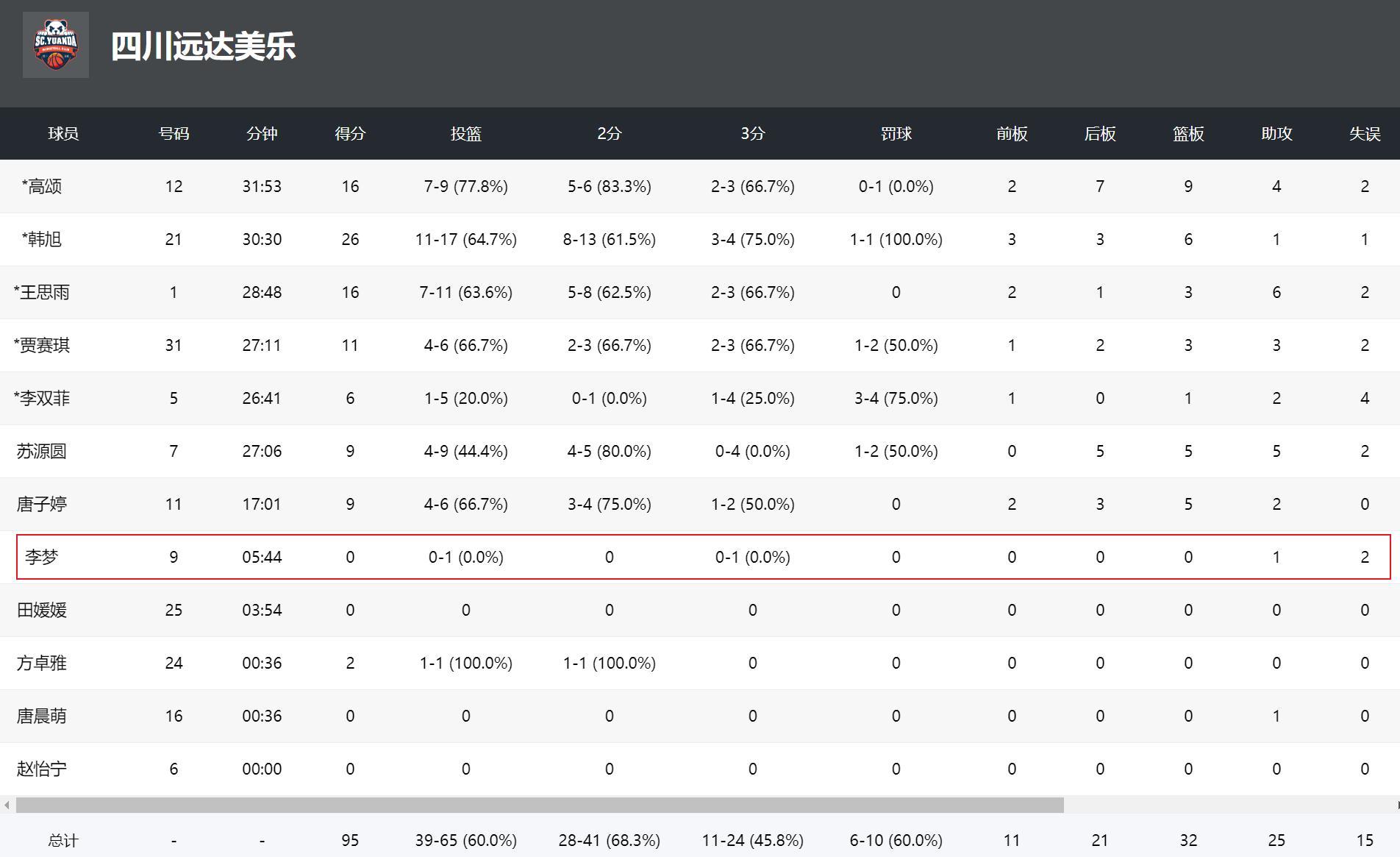 輪休了兩場比賽的李夢終於復出,但她明顯還是身體不適,據說她是感冒了,此役全場比賽只打了5分44秒,1中0,拿0分1助攻2失誤。(李夢實際上等於只打了兩場全錦賽第二階段,後面的三場等於沒打)