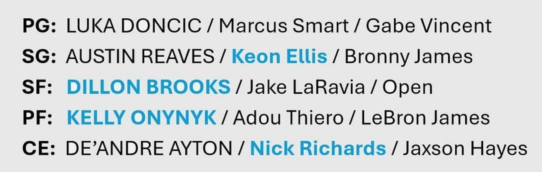 湖人隊還是一套14+3陣容,但硬實力會強很多,埃利斯的防守起家的後場,狄龍也是聯盟最具威脅的有球防守者,奧利尼克、理查茲增加湖人前場深度。這支湖人會立馬變得截然不同。