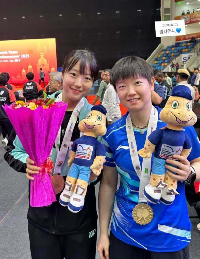 10月18日下午19點,申裕斌更新了社媒,她上傳了很多在亞錦賽期間的圖片,這位韓乒王牌本次亞錦賽團體賽率隊拿到一枚銅牌已經超出預期,她此前還曬出與多位國乒選手的合影。