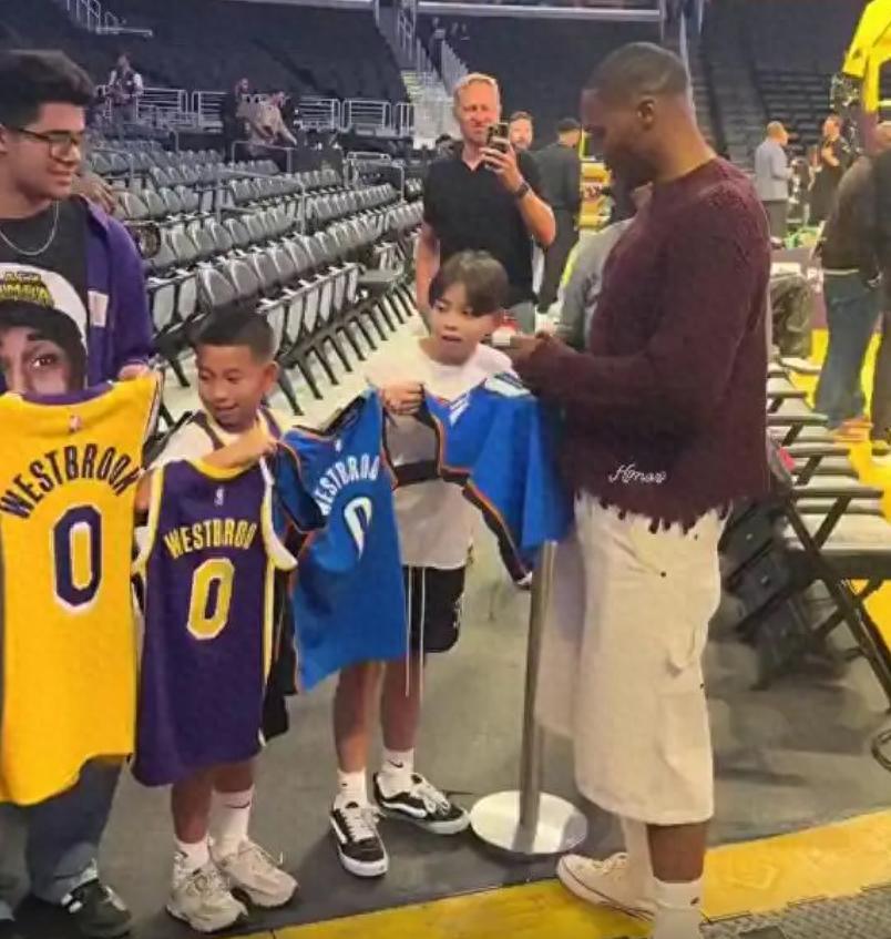 10月18日,國王VS湖人完成季前賽後,國王新援拉塞爾-威斯布魯克在場邊爲球迷簽名,雷霆球衣、火箭球衣、湖人球衣都有,少爺爲球迷簽名時唯獨跳過了湖人球衣。這個舉動引發了熱議。