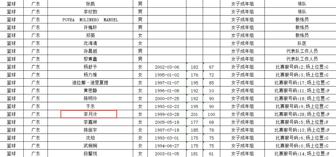廣東全運會女籃陣容失去了李月汝後就從7巨頭變成6巨頭:楊力維、黃思靜、楊舒予、迪拉娜、武桐桐、陳明伶,這五人都是現役/前中國女籃國家隊成員,鄭薇指導是這支廣東全運會女籃的主教練。