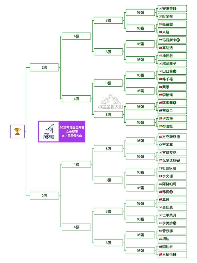 國羽女單這邊是全主力出戰:陳雨菲、高昉潔、韓千禧、王祉怡、韓悅;日本核心山口茜,韓國王牌安洗瑩都將出戰。