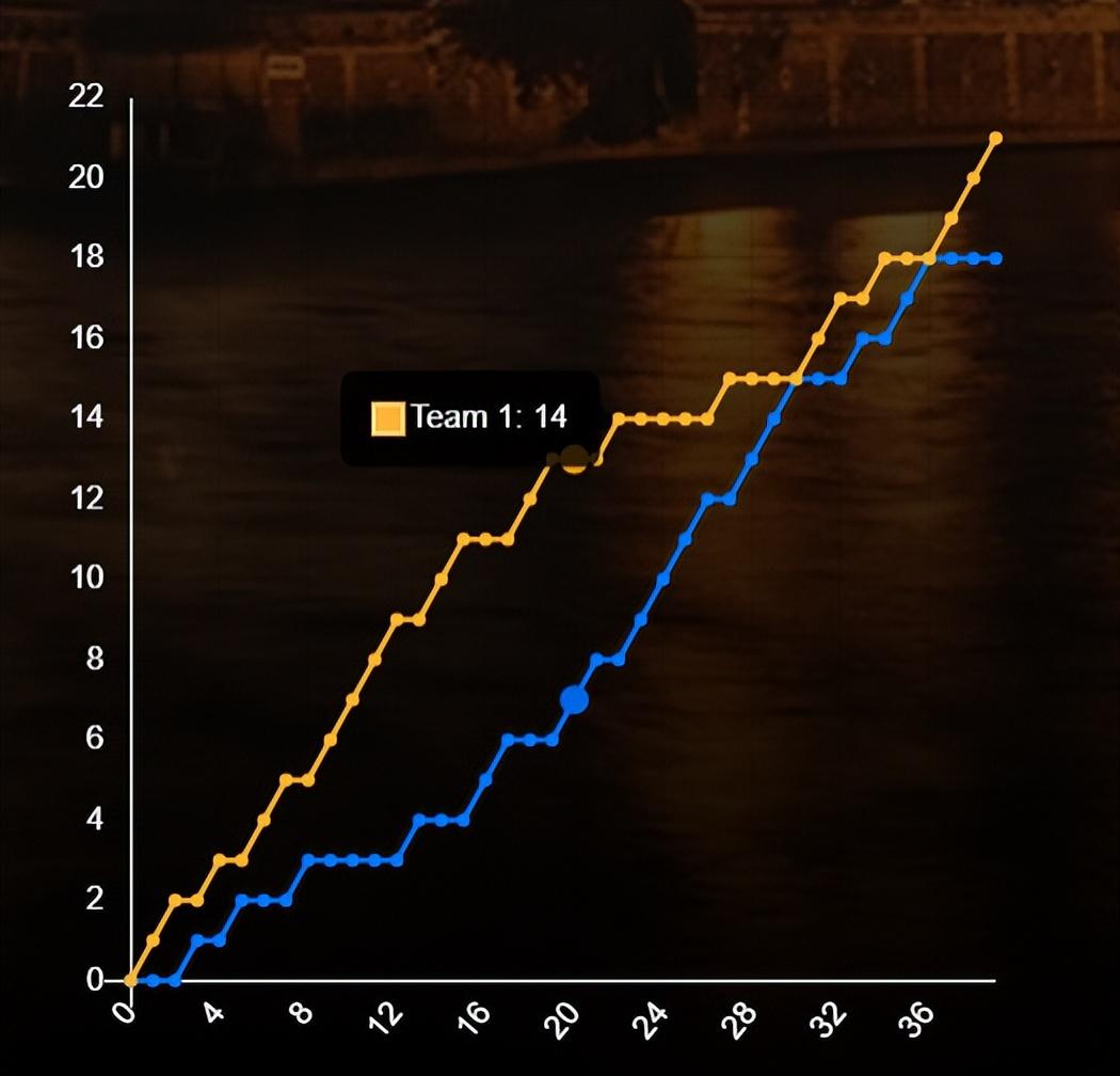 第一局開場世界排名第14的高昉潔被世界排名第11的瑪麗斯卡壓着打,瑪麗斯卡狀態很好直接是一波9-3拉開差距,高昉潔追到7-14,隨後高昉潔穩定心態打出了一波8-1的反擊高潮將比分扳成15-15,兩人就這樣相持到18-18,只可惜關鍵的3分高昉潔沒有把握住,瑪麗斯卡還是拒絕逆轉了。