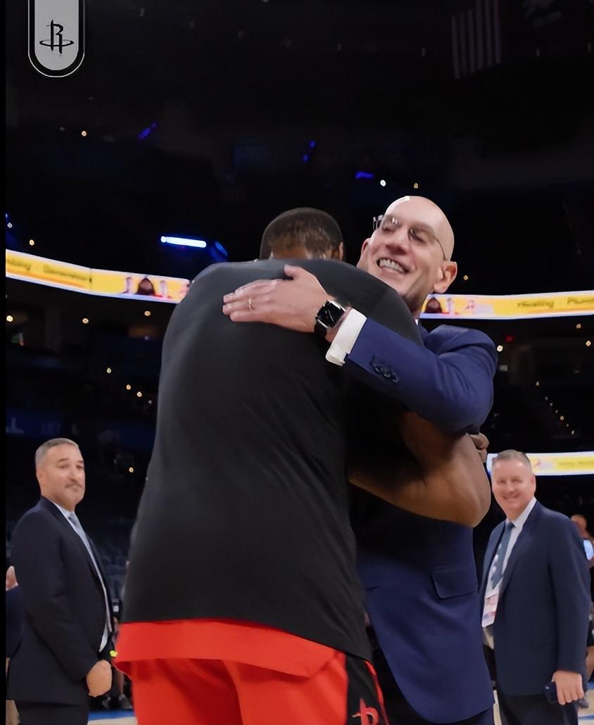 在頒獎儀式開始之前,火箭新援凱文-杜蘭特與亞當-蕭華進行了擁抱,杜蘭特也在雷霆頒獎儀式開始前已經離場。