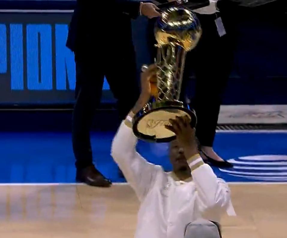 最後傑威拿着奧布萊恩杯向球迷們展示,全場再度高呼。