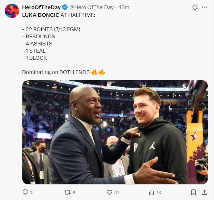 第二節的東契奇還將命中率都修正過來,單節5中4+三分1中1+罰球3中3,拿到12分2籃板3助攻1搶斷1蓋帽,半場已經拿到22分4助攻7籃板2搶斷1蓋帽的全能數據。